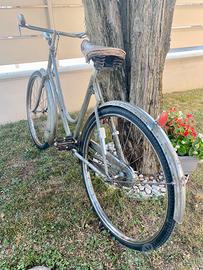 Bicicletta umberto dei imperiale del 1954 da donna, frenata integrale, mozzi originale dei, pedali a centro intero con gommini dei, gemma catarifrangente, colore argento conservato extraserie con filetti blu, sella a muso di cane imbottita in crine di cavallo, luce e dinamo funzionanti, revisionata e completamente ingrassata, pedalabile da subito.