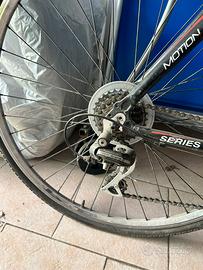 Bici esperia long distance trekking ciclo trekking Vendo bici per cambio categoria, usata pochissimo, perfetta da usare in città/collina, giri fino a 30km anche salita va bene Cambio shimano Acera 3x7, 21 velocita per trovare ogni rapporto perfetto in salita e discesa Freni a pattino Peso 13 kg, quindi bella leggera perfetta e scattante Appena fatta controllare in negozio e mi hanno detto che tutto è in ottimo stato(trasmissione catena pacco pignoni freni) Unica cosa la ruota davanti deve essere centrata, unico costo da fare 10€ alla decathlon e basta Classici segni di usura sul sellino ma normale appoggiandola in giro. Costo sella nuova irrisorio. Costo sarebbe 200 ma visto il lavoretto da fare alla decathlon metto a questo prezzo