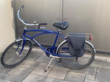 Bicicletta blu da uomo marca Baldoni. Usata pochissimo, ben funzionante e dotata di luci, freni, campanello e cavalletto. Tasche un po’ usurate e catena da oliare xchè con un po’ di ruggine per il tempo. 247262