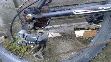 Bicicletta usata mountain bike da uomo - Telaio in acciaio - Forcella ammortizzata Speed-Fork - Cambio Shimano Tourney TX - 21 velocità - Frizione RevoShift - Cerchioni rinforzati a doppia camera - Ruote 26 x 2.00 (51-559) 26 pollici - Sellino ergonomico Free Boys Extreme - Pedali Wheel Top Dimensioni bici: - lunghezza da ruota a ruota : 175 cm - altezza al centro del manubrio : circa 1 metro - altezza sella : 75-95 cm a seconda di quanto tirate su La bici è ancora in buono stato. Necessita un pò di manutenzione poichè ovviamente sono presenti i classici segni di usura e del tempo quali lievi scortichi, segni di ruggine , eccetera. Un pedale ha un pezzetto di plastica rotto ma non ne inficia le prestazioni. Lasospensione a pompa della forcella anteriore va ricaricata che è scarica. In commercio trovi bombolette di CO2 per la ricarica degli ammortizzatori di bici. NON SPEDISCO Se non puoi venire tu in auto , prova in treno, informati: ormai quasi tutti i treni consentono il trasporto di biciclette . Guarda sempre anche la tua cartella SPAM per eventuali risposte perse (non sempre finiscono nella cartella IN ARRIVO) Guarda anche i miei altri annunci tel.3716299837