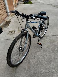 Vendo bicicletta per ragazzo/a alto da 1,55 a 1,65. MTB marca decathlon modello rock rider colore grigio con ruote misura 26. Bici in condizioni come da foto, normali segni di utilizzo, meccanica revisionata, monta cambio Shimano 18 rapporti e cavalletto. Bici ideali da lasciare in stazione o per andare a scuola. Viene venduta pulita pronta all'uso. Possibile prova e presa visione senza impegno al mio domicilio Cinisello Balsamo.