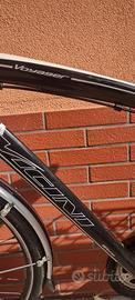 Questa è una bicicletta da città/trekking, identificabile come un modello Viciani Voyager con ruote da 28 pollici. Ruote: Misura da 28 pollici (diametro effettivo dello pneumatico di circa 622 mm), ideali per scorrimento su asfalto e percorsi misti. Modello: Vicini Voyager, solitamente equipaggiata per uso urbano o cicloturismo leggero. Caratteristiche: Telaio nero, parafanghi, portapacchi posteriore integrato e sella sportiva ben conservata!!