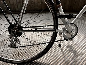 Totalmente rivisitata: cambiato mozzo centrale per montare corona da 32 denti, restaurato ruote e freni; sostituito cambio, catena e rapporti nuovi.