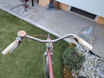 Splendida bicicletta vintage firmata Atala, storico marchio italiano sinonimo di qualità e resistenza. La bici presenta una bellissima linea classica con telaio da uomo color amaranto/rosso opaco originale dell’epoca. La bici è conservata con i suoi componenti originali, ideale per chi cerca un mezzo affidabile per la città o per un progetto di restauro conservativo ("eroica" style). Caratteristiche principali: Marca: Atala (marchio originale sul telaio). Sella: Selle Monte Grappa (modello Roger con molle), molto comoda e in ottime condizioni. Accessori inclusi: Portapacchi posteriore robusto, campanello vintage, cavalletto e impianto luci con dinamo originale e faro anteriore cromato. Dettagli: Manopole color crema coordinate con lo stile retrò. Stato: La bici è funzionante. Presenta una naturale patina del tempo che ne autentica l'originalità (lievi segni di ossidazione sulle parti cromate, come da foto, eliminabili con una passata di pasta abrasiva). Perfetta per spostamenti urbani, per studenti o amanti del vintage.