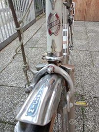 Vendo bici uomo molto rara Michelin con tutti i pezzi originali anni 1950 circa,revisionata mantenendo il fascino del originale vintage,pronta al uso molto scorrevole cerchi da 28,parafanghi inox,misura tubo orizzontale 56 cm,con chiusura lucchetto a due chiavi ancora con la vecchia etichetta.