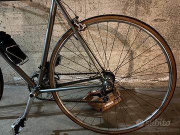 Bici vintage ottime condizioni cerchi Nisi con palmer ottime condizioni d’uso mozzi campagnolo freni e pattini WEINMANN deragliatore anteriore shimano posteriore huret movimento centrale ofmega catena nuova fili freni nuovi sella ottima buona anche per eroica basta cambiare manubrio con uno da corsa.
