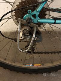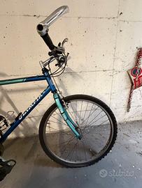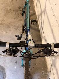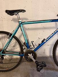 Vendo bicicletta mountain bike d'epoca Olympia modello Oversize, un classico della produzione italiana anni '90. È una bici costruita con criteri di alta qualità, ideale per chi cerca un telaio eterno per uso urbano, cicloturismo o per un progetto restauro/gravel. CARATTERISTICHE TECNICHE: Telaio: Acciaio pregiato Cromo-Molibdeno (Cro-Moly) con tubazioni Oversize, Made in Italy. Materiale noto per essere leggero, elastico e molto resistente. Taglia: 56 (XL), ideale per persone di statura alta (circa 1,80 m - 1,90 m). Usata da persona di 1,80 m. Cambio: Gruppo misto Shimano Acera / Altus (21 velocità), molto robusto. Ruote: Cerchi DRC originali marchiati Olympia, mozzi Shimano HB-RM40. Componenti di marca: Sella Selle Royal Moonlight (con inserti gel), collarino reggisella Miche, forcella ammortizzata RST 171B. Accessori inclusi: Doppi portaborraccia, appendici manubrio in alluminio, pedali con gabbiette originali. STATO DELLA BICI : La bicicletta è rimasta inutilizzata in garage per un paio d'anni e necessita di alcuni interventi per tornare in perfetta efficienza: Pneumatici e camere d'aria: Da sostituire (la gomma è secca causa fermo prolungato). Cavi e guaine: I fili (freni/cambio) presentano una guaina da sistemare/sostituire. Estetica e vernice: Il telaio presenta segni del tempo, graffi da utilizzo e residui di vecchi adesivi. In alcuni punti la vernice originale presenta segni di scrostatura e fioriture superficiali. il telaio è solido e integro. Meccanica: Da pulire e lubrificare (catena e pacco pignoni). Vendo per inutilizzo nello stato in cui si trova. È un'ottima base per chi conosce il valore dei telai Olympia in Cro-Mo e desidera una bici "di sostanza". Prezzo: 90 € trattabili. Ritiro: Solo a mano zona dalmine.