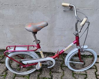 Bici Vintage Pieghevole Tipo Graziella o Atala. Anni '80, rosso vermiglio, con cerchioni e ruote bianche dell'epoca e carter di protezione per la catena. Con portapacchi. Funzionante, lasciata da mio padre che seguiva la parte meccanica.
