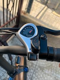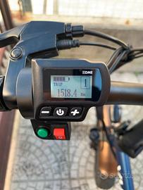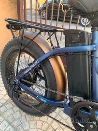Fat-Bike Vulcano S-TYPE V2.1: Bicicletta elettrica pieghevole con motore brushless 250W, batteria 36V, pneumatici 20 “x 4”, freni a disco meccanici, luce LED anteriori, 5 livelli di assistenza. 1) Indicatore di stato della batteria, per tenere traccia dell’autonomia residua e della carica disponibile per poter intraprendere un viaggio in totale sicurezza. 2) Retroilluminazione, per garantire un ottima visibilità del display anche in presenza di forti luci. 3) Contachilometri, utile per tenere sotto controllo la velocità di marcia. 4) 5 livelli pas, permette di adattare la velocità di rotazione dei pedali per favorire una guida migliore e soprattutto per avere un maggior controllo su pendenze in salita e in discesa. Bici completa di: >> Portapacchi >> Luce Freno posteriore >> Frecce direzionali e freni a disco 7 marce, 5 velocità Autonomia: 40/50km Ottime condizioni con solo qualche segno di usura Tutto funzionante: Schermino Batteria Luci Clacson Piccolo taglio sul seggiolino che si può facilmente coprire con un coprisella Km 1518 Compresa di caricatore, batteria funzionante e chiavi