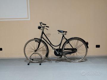 Bici Witson (made in England) donna vintage di colore nero, tutta originale con finiture cromate sui parafanghi, gomme con fianchi di colore bianco, freni a bacchetta e cestino.