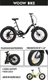 NUOVA SIGILLATA (VALORE 299?)Dettagli tecnici Colore del prodottoNero Capacità massima di carico120 kgPortapacchiNo Numero di ruote2 Altezza minima dell'utente 150 cm Controllo del freno della bicicletta Freno a mano Impianto frenante Disco Design telaio Pieghevole Numero di rapporti6 Dimensioni ruote20 "Materiale dei cerchioniAlluminio Sistema di trasmissione Catena Materiale forcella anterioreAcciaio Materiale del telaio Acciaio Tipo Fatbike Dimensioni e peso Larghezza1710 mmProfondità 580 mmAltezza1100 mmPeso23000 gPeso dell'imballo 25000 g Contenuto dell'imballo Manuale dell'utenteSì Illuminazione Luce incorporataSì Caratteristiche Materiale del corpo del mozzoAcciaio CavallettoSì Materiale della catenaAcciaio Colore del copricatenaNero Pubblico di destinazioneAdulti Tipo di genereUnisex