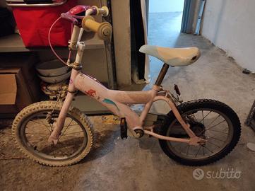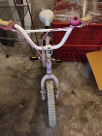 Vendo bici per bambina, cerchi da 16 pollici. Perfettamente funzionante e con copertone e camera d'aria posteriore nuovo. Sulla bici sono riprodotti personaggi delle favole.