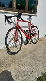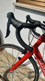 Bici Zanardo RC1, marchio italiano ed artigianale (Santa Maria Di Piave), presenta telaio full alluminio con forcella anteriore in carbonio, cambio Shimano 105 a 11 rapporti ed a 2 pignoni anteriori, molto fluida per strada. Monta cerchi Miche da 23 e freni a ganasce. Appena fatta revisione completa.