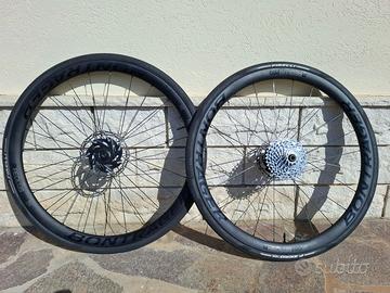 La vendo per forzato inutilizzo. Anno 2024. Telaio in carbonio OCLV 800 taglia 58, ruote in carbonio, cambio 12 v Sram Force Axs, doppia corona anteriore, più set ruote completo in allumino con pneumatici per Gravel