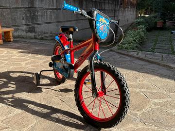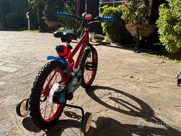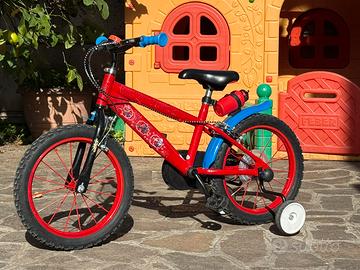 Bici MARVEL Bambino da 16 pollici Spiderman Età 4-6 anni, Borraccia,Telaio in metallo, Rotelle Security Plus