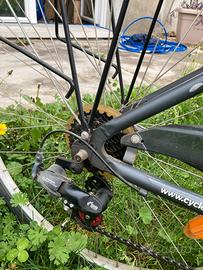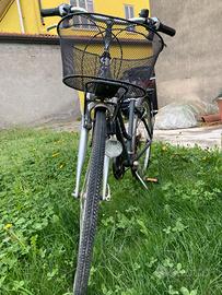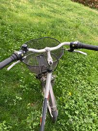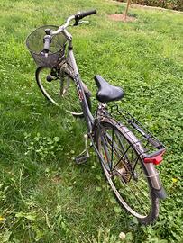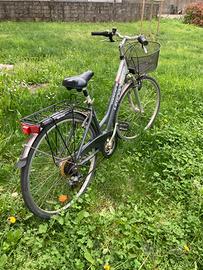 Vendo bicicletta da donna tipo LEGNANO per inutilizzo . Caratteristiche Principali: - Stile: Elegante - sportivo - Ruote: 26 pollici - Cambio: Sistema Shimano Touney - Dettagli: ammortizzatori anteriori, fari anteriore e posteriore , cambi con comando su manopole , due corone cambio su pedali e sette su ruota , carter catena coprente, robusto portapacchi posteriore e anteriore . - Accessori inclusi: Campanello, cavalletto e pompetta per gonfiaggio ruote . Preferibile ritiro a mano per verificare di persona le condizioni intonse della bicicletta.