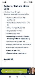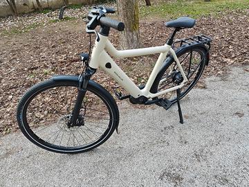Bici elettrica premium unisex Si tratta di una delle bicii più leggere da città Pesa in torno a 20 kg Bici a cinghia con cambio Enviolo senza manutenzione, molto silenziosa e pulita Motore e batteria Bosch, freni Măgura. Pochi km , tenuta sempre al coperto,tutti i dati visibili nella applicazione Flow della Bosch! La bici e come nuova e funziona perfettamente Va bene per persone alte da 1,73-1,85 cca