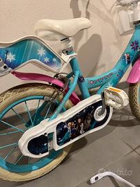 Bicicletta frozen da 14 pollici con segno di usura sul cestino posteriore