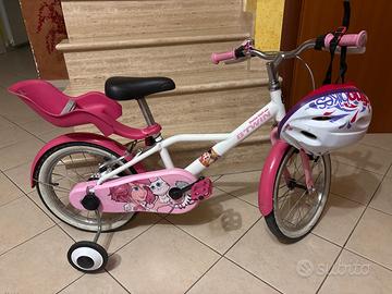 Bici bambina molto comoda e leggera. Vendo per acquisto di bici piu grande. La bici ha rotelle, casco e seggiolino porta bambola…