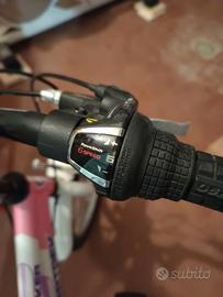 Bicicletta 20” Jumpertrek evolution frame girl. Telaio Hi-Tension Max-Tubing Manubrio Alu-Acciaio Verniciato Comandi Shimano Revo RS-35 6 Speed Leve Freno Alluminio Sella Bassano Bike Gp Cannotto Acciaio 200 mm Bloccaggio Sella Alluminio con Bloccaggio Guarnitura Acciaio 40x152 mm Cambio Shimano Ty-21 Mozzi Acciaio con Dadi Ruote Alluminio 28 Raggi Ruota Libera Shimano 6 Speed Index Pedali City Resina Carter Plastica Parafanghi Plastica Cavalletto Alluminio