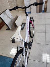 bicicletta Montainbike misura 24 per ragazza tutta funzionante e completa di doppio cambio Shimano, cavalletto , sgancio rapido ruota , e regolazione veloce altezza sella. Subito pronta per pedalare. Bici di famosa marca ( galant ) PREFERISCO LA VENDITA A MANO. visibile a via Laurentina