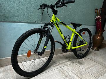 Bicicletta MTB 24 pollici giallo fluo, praticamente nuova, con le marce, luci post e cavalletto BELLISSIMA