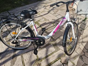 vendo Bicicletta 26" Mountain Bike Aurelia Roadster Bike Bianca e rosa per inutilizzo. ha le gomme a terra proprio per questo motivo,ma niente di grave. usata non poco,ma pochissimo.