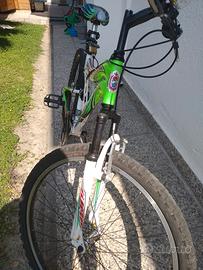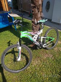 vendo Mountain bike in buone condizioni. Sospensioni anteriori e posteriori . Cambio Shimano 6 + 3 velocità. Ruote in alluminio con copertoni al 90%.