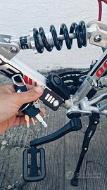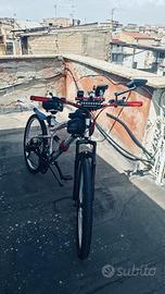Vendo bicicletta 26 con 7 marce conta chilometri +luce davanti e dietro +frecce clacson specchietto porta telefono anche antifurto con telecomando + due catene per bici +borsa freni a disco parafanghi impianto tutto nuovo seggiolino amortizato bici amortizata monta sterzo accattivante. Copertoni nuovi Più nel prezzo metto una pompa per gonfiare le ruote regolatori raggi pulitori per il pignone piu sterzo originale e piu 5 fili per freni nuovi
