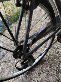 Bicicletta da 28" usata pochissimo, copertoni ancora nuovi, predisposizione borraccia. Aurora Goccia. Rivenditore Salvador (Tv) Cicli su misura. Ruota anteriore con sgancio rapido.