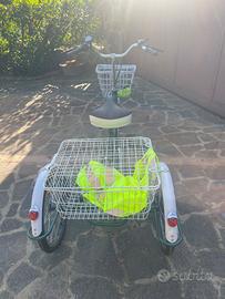 Bicicletta a 3 ruote con 7 velocità, 2 cestelli, uno piccolo frontale e uno più grande dietro. Con freno a tamburo e freno di stazionamento. Praticamente solo provata! Vendo per passaggio a triciclo elettrico!