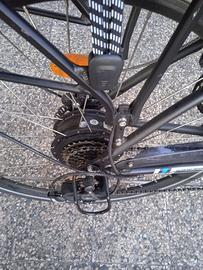 bicicletta elettrica a pedalata assistita. Autonomia fino a 90km in modalità eco. 6 livelli di assistenza, tra questi vi è la modalità Walk e la 0 per escludere il motore, che permettono di affrontare anche brevi salite impegnative. Batteria 36V 13Ah con capacità di 504 Wh. Il motore elettrico, posizionato anteriormente, di tipo brushless, è il modello Bafang 8Fun FD in grado di sprigionare una coppia motrice di 32 Nm sfruttando una potenza di 250 W.
