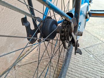 Bicicletta blu con portabagagli.