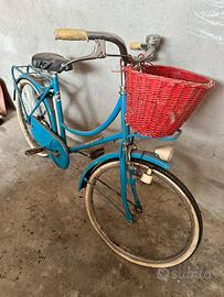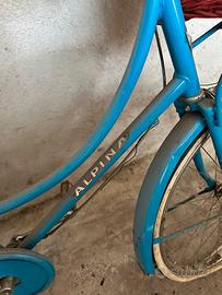 Vendo bici donna vintage marca Alpina, Made in Italy. Telaio robusto, colore azzurro originale. Completa di carter, parafanghi e pompetta originale dell'epoca. Ideale come bici da città (city bike) o per studenti. Da revisionare (gomme e freni), ma ottima base di restauro facile."