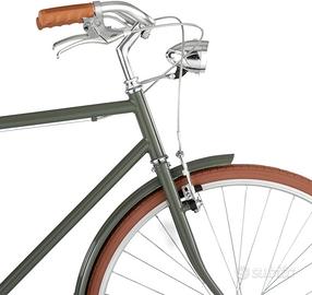 Bici Sporting 28” in colore verde militare, dallo stile classico e pulito, pensata per un utilizzo urbano pratico ed elegante.