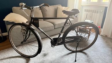Salve la bicicletta e degli anno 60 con freni a bachetta e colore oroginale , e stata scrostata dalla riggine mantenendo il suo colore e ptegio orgiginale . La bicicletta è con locatenna della azienda sanitaria di piacemza ASL perché erano quelle cje venivano assegnate a loro . Ped le consegne delle mendicime . Prodotto efficiente e che cammina bene in quanto e’ stata restaurata. Prezzl leggermente trattabile