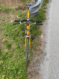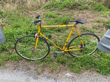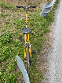 Come da titolo vendo bicicletta Arbos con telaio in ferro, taglia 58, in buone condizioni come da foto. Di seguito il montaggio: cambio a telaio 3x6 con deragliatore Mountain LX e guarnitura Shimano, freni Saccon e Universal Extra, cerchi made in Europe 700c, sella Selle Italia. Bicicletta funzionante e pronta uso. Grafiche non originali, replica, comunque è un telaio Arbos come da scritta stampata sul telaio.