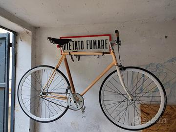 Bicicletta artigianale a scatto fisso perfetta Telaio 55 in acciaio, colore beige, freni anteriori stradali , in perfette condizioni