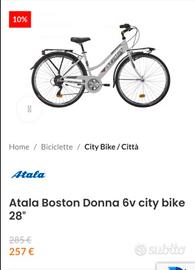 Bicicletta Atala Boston 6V city bike da donna, NUOVA mai usata e ancora imballata con libretto istruzioni.