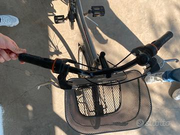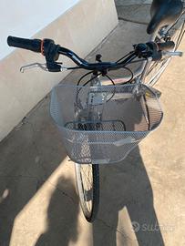 Bicicletta da donna Atala Explorer con cestino davanti al manubrio. Perfettamente funzionanti freni e catena. Gancio sulla ruota posteriore. Faro luce anteriore e faretti posteriori riflettenti.