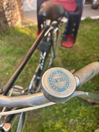 bicicletta Atala Super Sprint nera, un modello utilitario che appare essere degli anni '70 o '80. Caratteristiche principali: Modello e Marca: La bici è un modello Super Sprint della marca italiana Atala, come indicato dai loghi sul telaio. Design: Presenta un telaio classico da uomo di colore nero. Si distingue per il caratteristico manubrio stretto in acciaio saldato e un carter paracatena aperto. Componenti: La bicicletta è equipaggiata con un deragliatore Ofmega Mistral. Include parafanghi, un portapacchi posteriore e, come accessorio aggiunto, un seggiolino per bambini rosso e nero ovviamente removibile. Condizioni e Dettagli Aggiuntivi: La bici ha ruote da 28 pollici e cambio. Vendo solo al domicilio