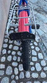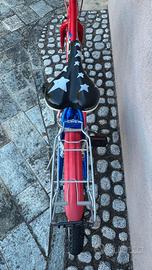 Colori rosso e blu, completa di portapacchi e parafanghi.