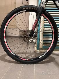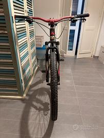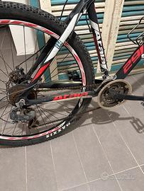 Atala Snap 29 -Gomme Maxxis 80% -Pedali in alluminio -maubrio Wag 780mm e rialzato -Sellino svitavile solo con chiave -freni a disco maccanici avanti e dietro -Manopole con anello esterno rosso(da sostituire) - 3 modalita alla corona centrale - 7 marce -Forcella ammortizzante anteriore