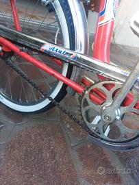 Bici originale anni 70 modello simil graziella , funzionante , ben tenuta con varie parti appena sostituite : ruote , cerchi , freni catena , pedali ,luci ,campanello .vari segni di ruggine su telaio e parafanghi , sellino e luci originali. Prezzo non trattabile .