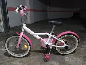 Vendo bicicletta B TWIN, Docto Girl 500, ruote da 16, rosa e bianca, in perfette condizioni, senza neppure un graffio, usata pochissimo. Eventuale spedizione in tutta Italia, 10 euro.
