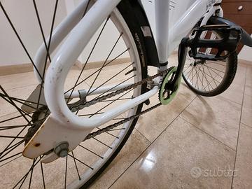 Bicicletta monomarcia con freno a pattino anteriore e frenata posteriore a contropedale. Non e' a scatto fisso, quindi se si smette di pedalare la bici avanza tranquillamente. Perfettamente marciante e pronta all'uso. Vendo per inutilizzo. Consegna in zona Pisa.