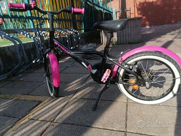 Bicicletta b-twin Rosa e nera, con rotelle, 16 pollici, età 5/6 anni. Buone condizioni