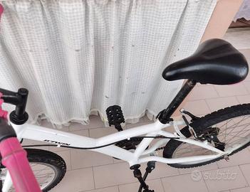 Vendo bellissima bicicletta B-Twin Mistigirl 300 Caratteristiche: Ruote da 20 pollici. Sella regolabile per adattarsi alla crescita del bambino. Campanello simpatico per avvertire gli altri della presenza del bambino in strada. Riflettenti sui raggi delle ruote per maggiore visibilità e sicurezza. Telaio bianco, manubrio nero con impugnature rosa, sella nera regolabile, pedali neri e arancioni, cavalletto laterale. La bici è pronta per essere utilizzata. Perfetta per i bambini che amano pedalare e scoprire il mondo intorno a loro. Non perdere l'occasione di regalare a tuo figlio una bici sicura e divertente! Contattami per ulteriori informazioni.