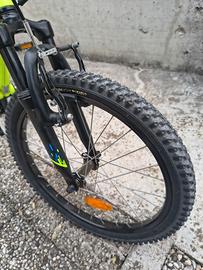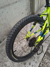 Bicicletta per bambini in ottime condizioni. La B'TWIN Rockrider ST 500 da 20 pollici è una mountain bike progettata specificamente per bambini dai 6 ai 9 anni (altezza 120-135 cm). Dotata di forcella ammortizzata, cambio Shimano a 6 velocità, freni V-Brake e ruote da 20 pollici con gomme MTB per terreni accidentati.