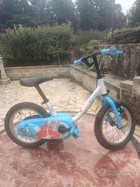 bicicletta marca b'twin 14 per bimbo 3 - 5 anni , predisposta per rotelle marchiata decathlon